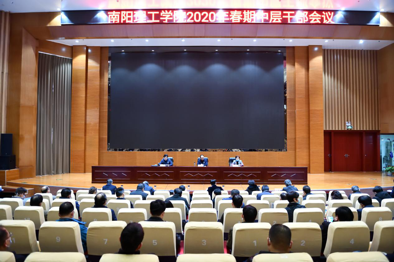 本网讯(记者/王虎)3月31日下午,我校在东南校区图书馆报告厅召开2020年春期中层干部会议。校党委书记邢勇对中层班子建设提出要求和希望,安排部署疫情防控及开学筹备相关工作。校长刘荣英简要回顾2019年工作情况,安排部署4月份及年度重点工作任务。校党委副书记秦鹏鸣主持会议。校领导张伟、肖泽昌、张铟、张世海、许建辉、周礼春出席会议。