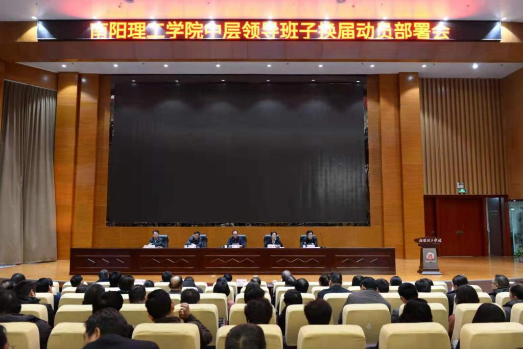 本网讯(特约记者/殷旭炎)12月5日,我校在第三报告厅召开中层领导班子换届动员部署会。南阳市公务员局局长周华、全体校领导出席,全校正科级以上干部参加,校长刘荣英主持会议。