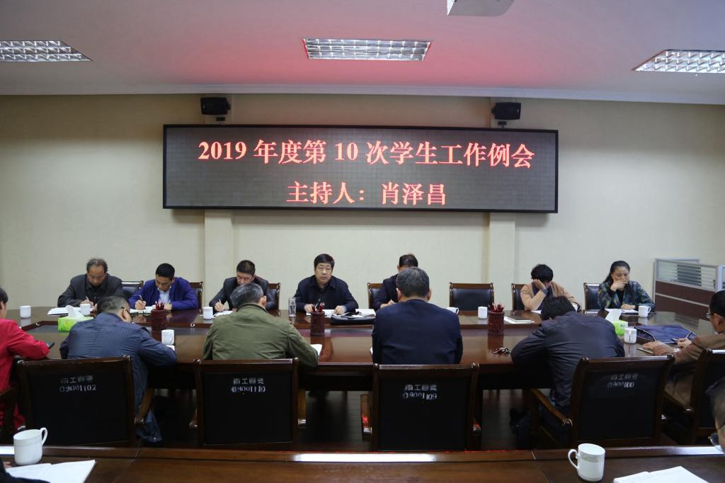 本网讯(特约记者/胡玲 张启鑫)10月28日,校党委委员、副校长肖泽昌主持召开我校2019年度第10次学生工作例会。学生处、团委、心理健康教育中心、保卫处、后勤管理与服务中心、校医院等单位主要负责人,各教学院学生工作主要负责人参加会议。
