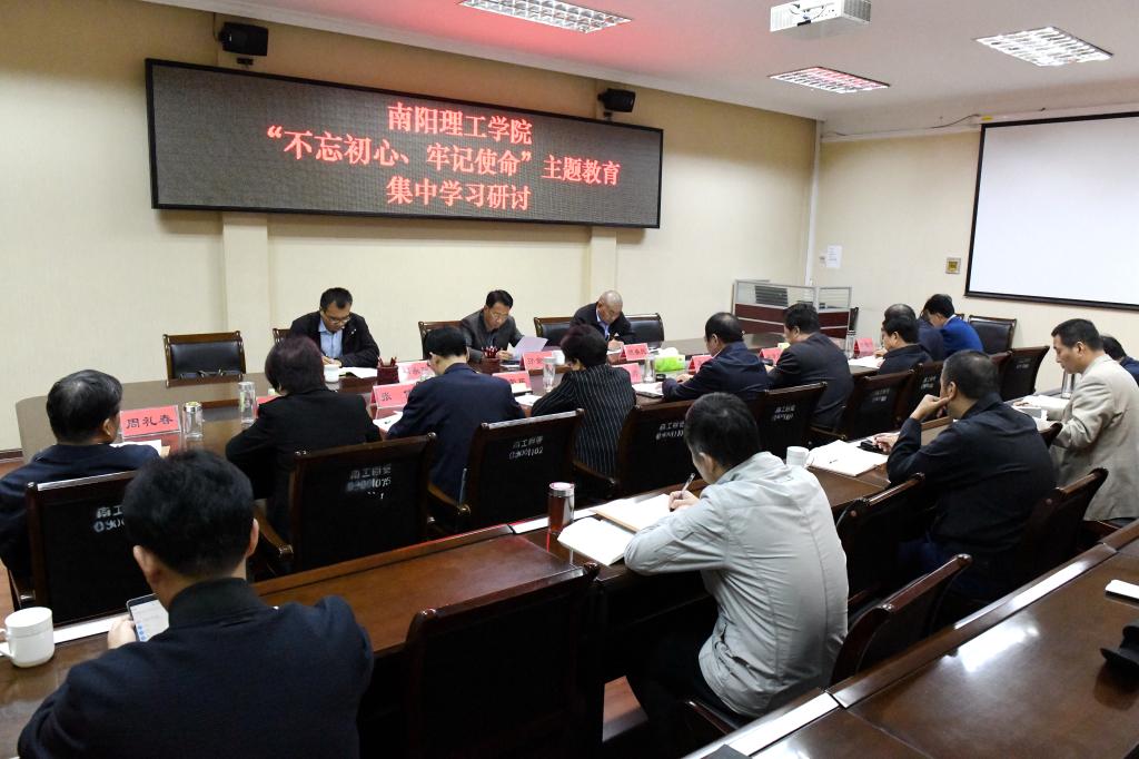 本网讯(记者/王虎 学生记者/王锦丽)按照学校开展“不忘初心、牢记使命”主题教育整体安排,10月9日下午,我校在第一会议室召开领导班子主题教育第一次集中研讨会。省委“不忘初心、牢记使命”主题教育第十一巡回指导组组长孙金锋,成员魏春民、麻永强到会指导。校领导邢勇、刘荣英、秦鹏鸣、张伟、肖泽昌、张铟、张世海、许建辉、周礼春出席会议。校党委书记邢勇主持研讨会。