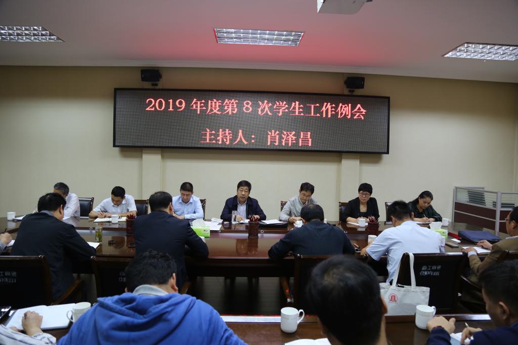 本网讯(特约记者/胡玲 张启鑫)9月16日,副校长肖泽昌主持召开2019年度第8次学生工作例会,学生处、团委、心理健康教育中心、保卫处、后勤管理与服务中心、校医院等单位主要负责人、各教学院学生工作主要负责人参加会议。
