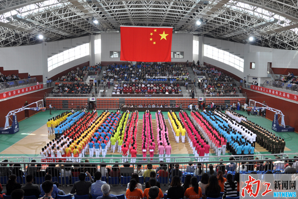 本网讯(学生记者∕代建玲吕梦乔通)4月29日,南阳市总工会庆“五一”职工广播体操比赛在我校体育馆举行。市委副书记陈光杰,市人大常委会副主任庞震凤,市政协副主席庹军,市人大党组成员、市总工会主席韩奎生,市政府党组成员、副市厅级干部方显中,我校党委书记刘建、校长姚锡远、工会主席周礼春出席比赛。全市党政机关、教育、企业等14支职工体操代表队共1006名职工参加比赛。