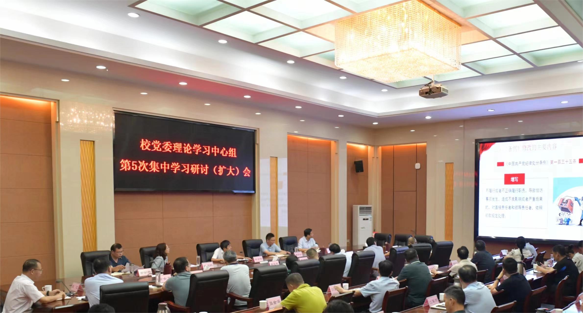 本网讯(记者/王小婉)6月27日上午,校党委理论学习中心组在会议中心室举行2024年第五次集中学习暨党纪学习教育第三次集中学习研讨(扩大)会,围绕《中国共产党纪律处分条例》“六项纪律”中的工作纪律、生活纪律开展专题学习研讨,校党委书记安士伟主持并讲话。