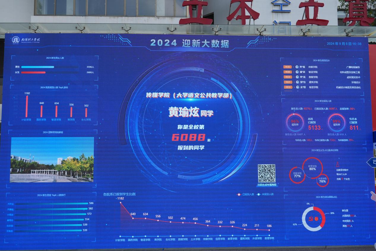 学校各部门、各学院立足工作职责,结合专业特色,做细做实各项迎新工作。学生处在校门处设置新生入学“绿色通道”,提供资助政策宣传和咨询服务并为新生发放“爱心大礼包”;信息化建设与管理中心在领创空间门前设置迎新数据大屏,实时更新学校迎新大数据;心理健康教育中心面向全体新生家长开展《家长如何为上大学的孩子成长助力》专题讲座,促进家校协同育人;各学院精心布置的迎新点各具特色,展示着专业风采和学院文化,并贴心准备内容丰富的新生大礼包,针对新生开展前置教育等活动,为家长提供休息区和饮用水等暖心服务,营造温馨入学氛围。