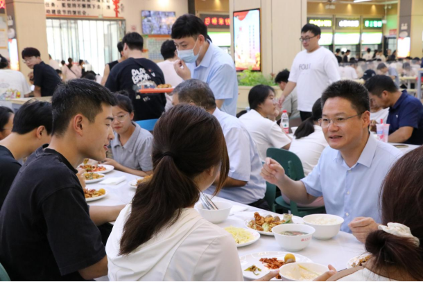 本网讯(记者/贾小真)为进一步加强我校食品安全日常管理,持续提升餐饮服务水平,9月8日中午,校长郝好山深入学苑餐厅,与学生共进午餐。党委副书记、工会主席董豪,学生处、后勤服务中心相关负责人陪同。