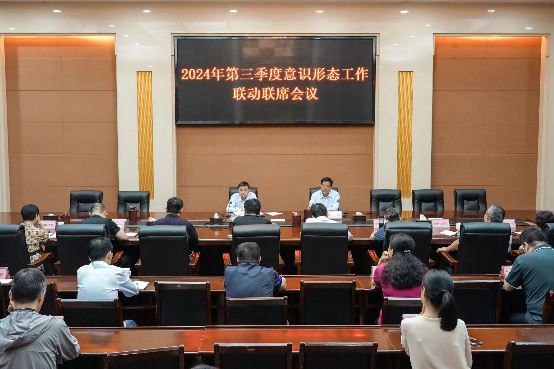 本网讯(记者/任寰)9月27日下午,我校在会议中心召开2024年第三季度意识形态工作联动联席会议,会商研判学校意识形态领域形势,交流做法、部署工作,校党委书记安士伟主持会议并讲话。