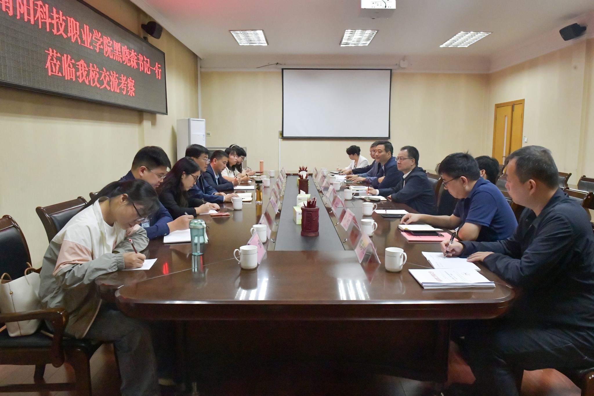 本网讯(特约记者/赵政)10月10日,南阳科技职业学院党委副书记黑晓森一行8人赴我校学习交流,深入学习我校在马院建设、教学管理、师资队伍建设等方面的先进经验和做法。我校党委副书记、工会主席董豪,副校长蔡广宇,人事处、马克思主义学院等相关部门负责人参加此次会议。