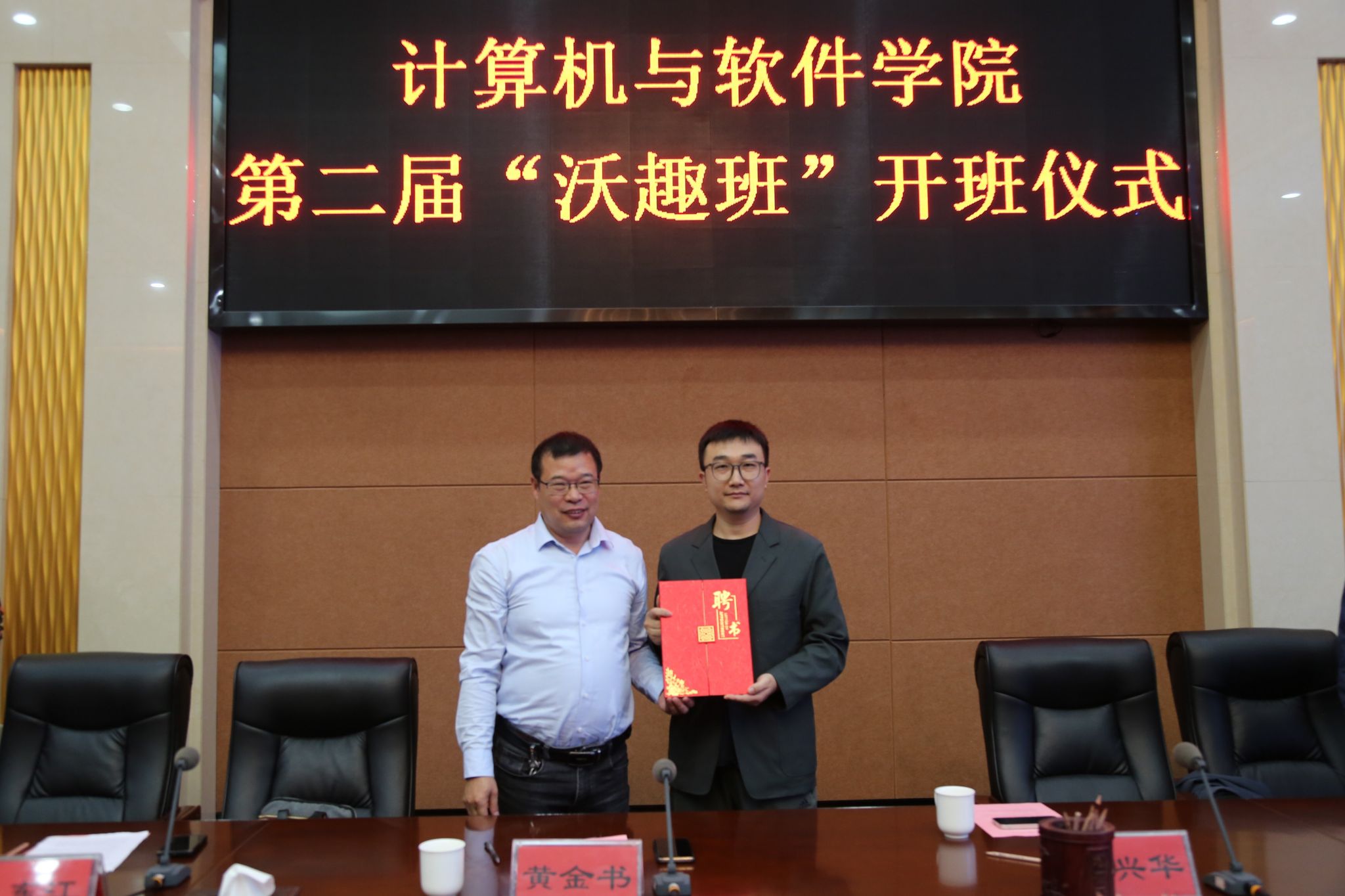 本网讯(特约记者/闫恒瑜)10月18日下午,计算机与软件学院第二届“沃趣”校企合作班开班仪式在会议中心举行。副校长黄金书,杭州沃趣科技公司CTO魏兴华、服务中心负责人王显伟、计算机与软件学院负责人及校企合作班全体师生参加活动。