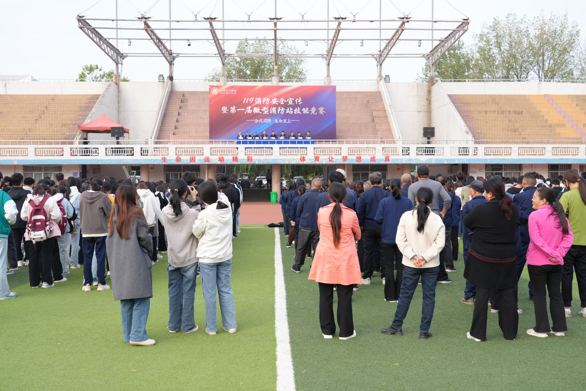 本网讯(特约记者/刘涛)11月8日,我校“119”消防宣传月启动仪式暨第一届大学生消防技能竞赛在东南校区体育场举行。副校长黄金书、市消防救援支队防火监督科王志博及师生代表参加活动。