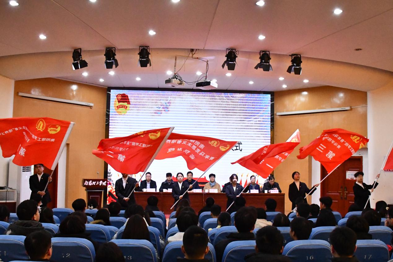 出席领导为第六届学员颁发结业证书,新老学员进行了青马学院院旗、组旗的交接,计算机与软件学院李沐航同学和范蠡商学院安俊丞同学代表新老学员作发言。