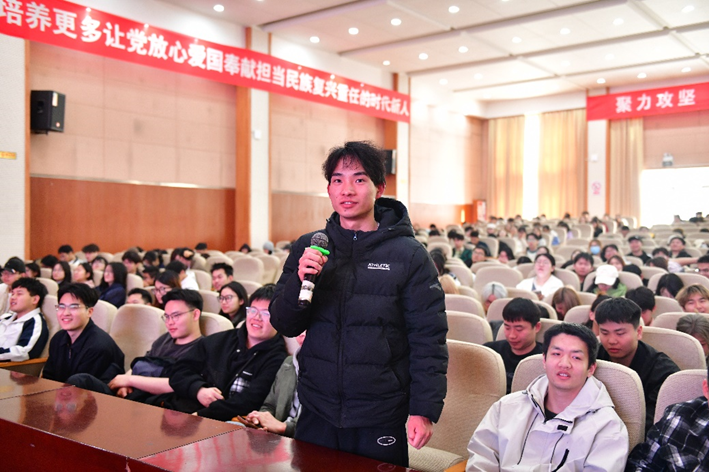 现场互动期间,同学们踊跃回答问题,从空军在抗美援朝时击落敌机数量,到新型战机的型号识别,再到对空军发展成就的概括,大家积极参与,展现出对国防知识的浓厚兴趣。申进科表示,希望新时代大学生要牢记为中华民族谋复兴的历史使命,将先烈的革命精神融入血脉,代代传承,在新时代新征程中奋勇前行。