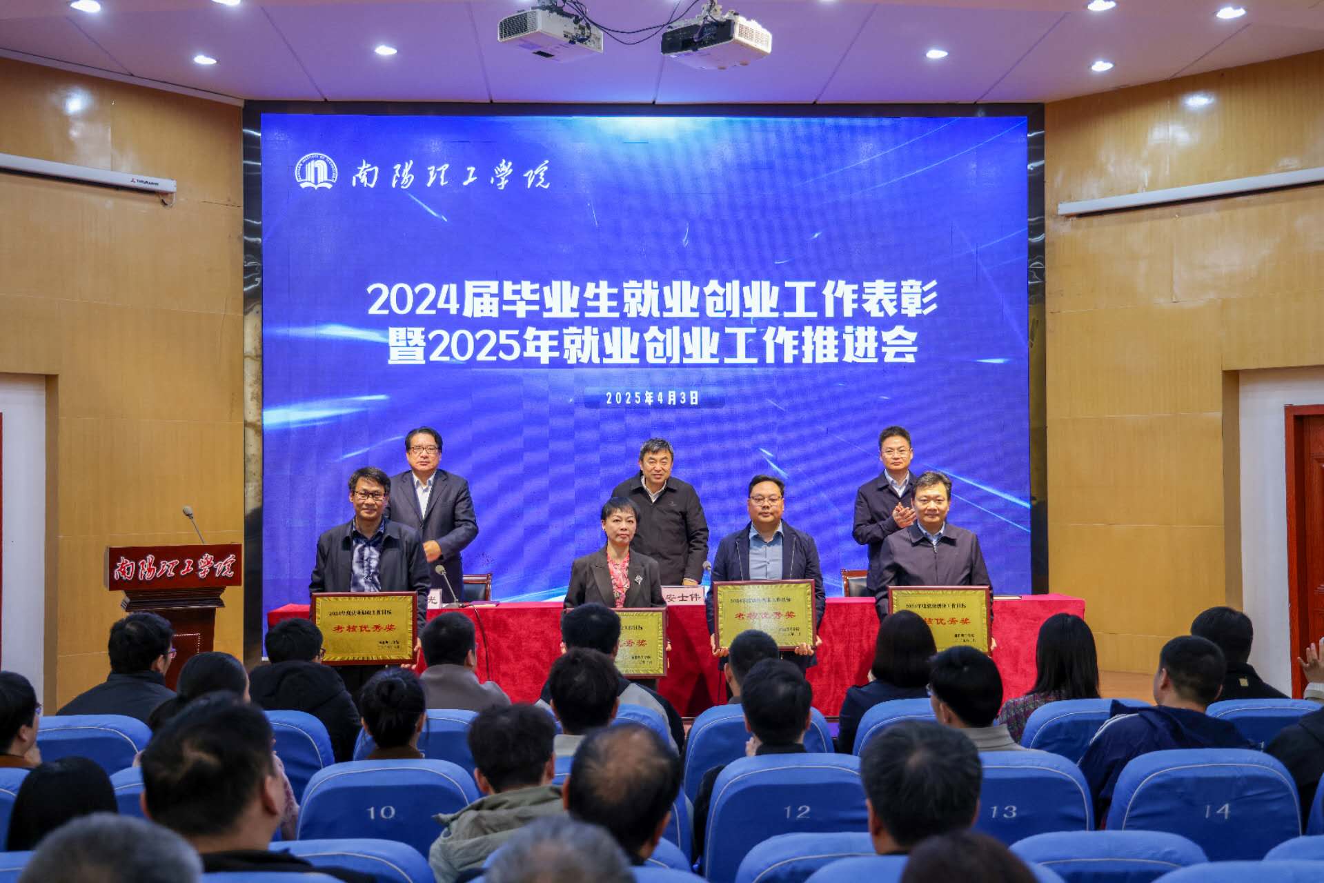 会议表彰2024年度学校就业创业工作先进集体和先进个人。先进代表智能制造学院、土木工程学院、教师教育学院、生物与化学工程学院作经验交流。
