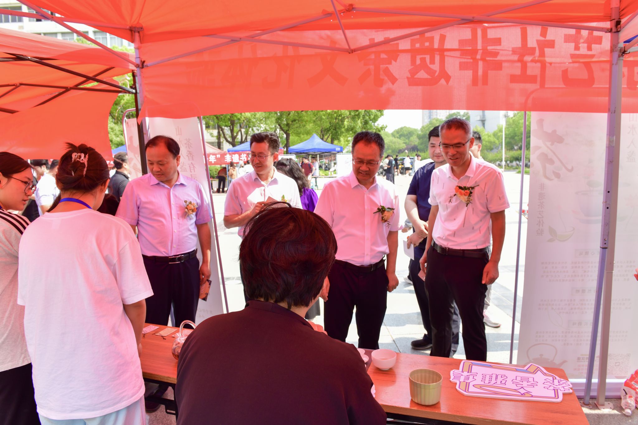 本网讯(特约记者/张天赐)5月24日,数字媒体与艺术设计学院首届“古韵新传,非遗逐光”传统文化节启动仪式在齐贤广场举行。副校长蔡广宇出席活动并致辞,非遗传承人代表,党委宣传部、学生处、团委等单位负责人,数字媒体与艺术设计学院师生代表参加活动。