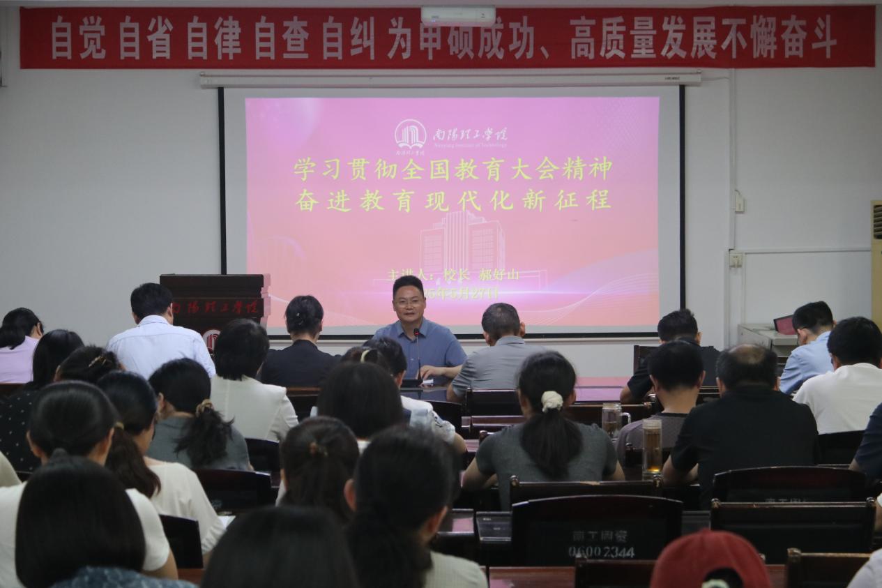 郝好山以《学习贯彻全国教育大会精神 奋进教育现代化新征程》为题,为师生代表讲授思政课。他围绕深入贯彻全国教育大会精神,落实《教育强国建设规划纲要(2024—2035年)》主题,结合新时代我国教育事业取得的历史性成就、发生的格局性变化,联系自身实际,阐述教育强国的科学内涵和基本路径,以及教育强国建设要正确处理好的重大关系、全面推进强国建设的战略任务和重大举措。他勉励学院师生要始终坚持以习近平总书记安博官方网页版教育的重要论述为指导,树立远大理想、精进业务本领、锤炼意志品质、赓续优良传统。进一步坚定建设高水平应用型理工大学的自信和自觉,不断增强使命感和责任感。充分发挥学院人才培养优势和特色,潜心立德树人,执着攻坚克难。为加快推进教育强国、科技强国建设,提升有组织科研水平、办学层次和应用型人才培养质量作出更大贡献。
