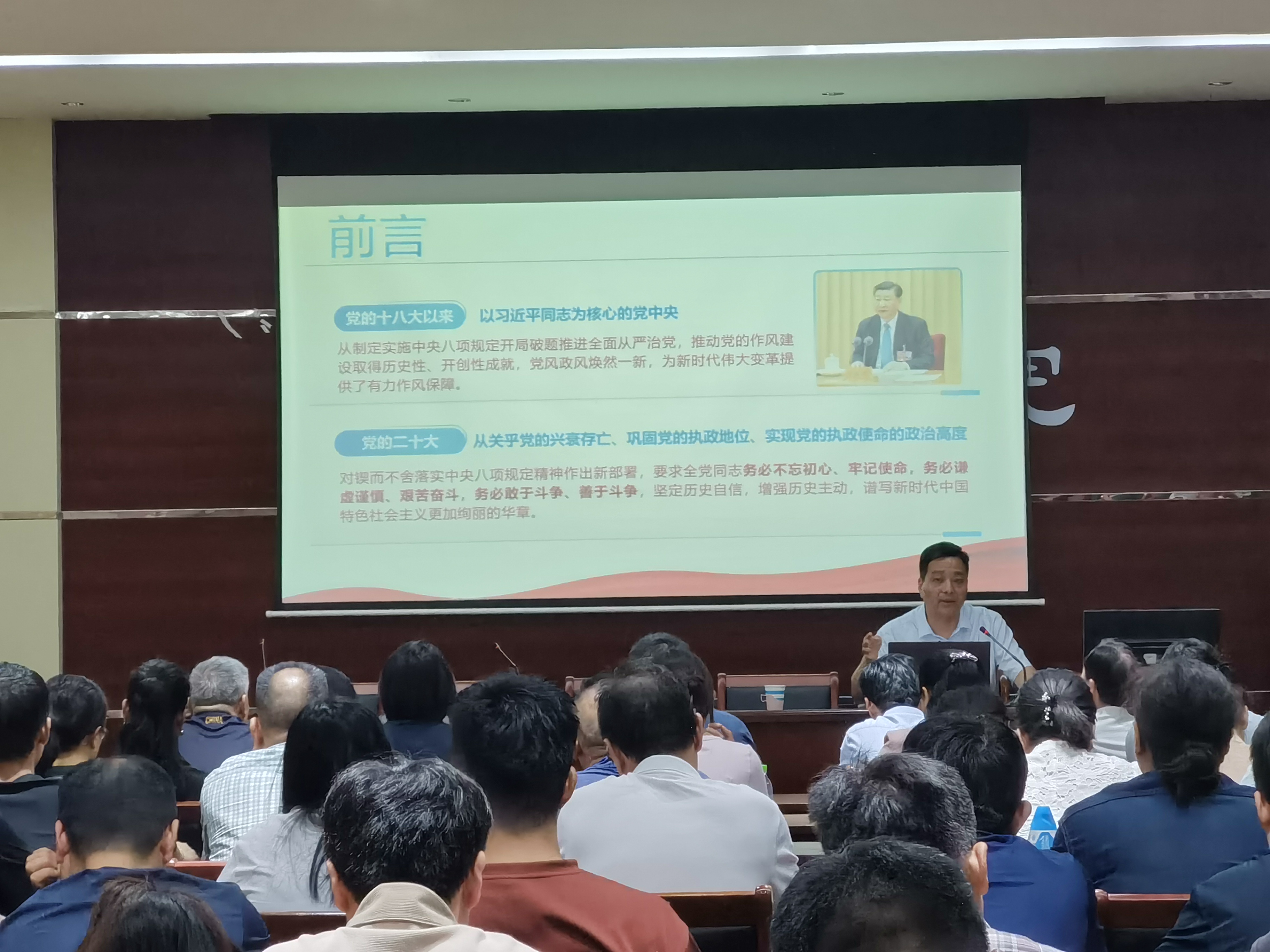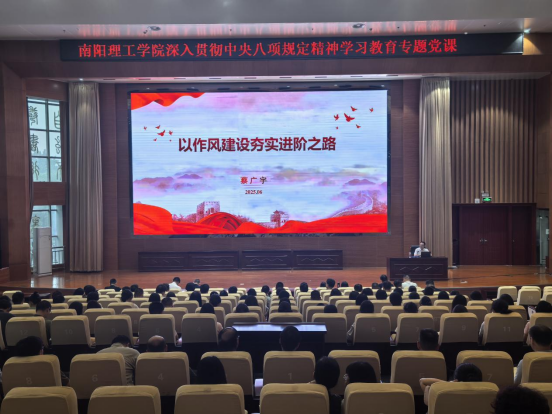 又讯(记者/王潇菡)为推进深入贯彻中央八项规定精神学习教育,6月25日下午在第三报告厅,副校长蔡广宇以“以作风建设夯实进阶之路”为题,为人事处、教务处、招生就业处、教学评估与质量监控中心、教师教学发展中心、外国语学院、智能制造学院师生党员讲授专题党课。