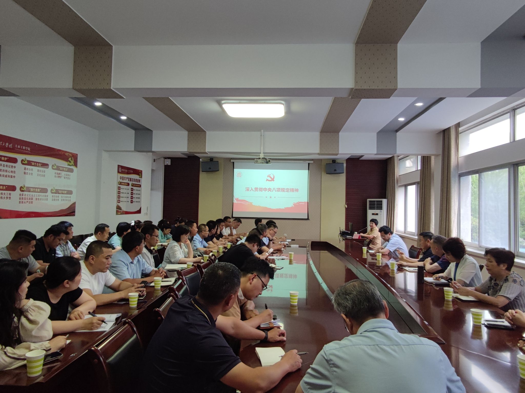 本网讯(特约记者/田真 学生记者/刘天宇)为深化党员干部作风建设,以优良党风引领学校教育事业高质量发展,6月25日,校党委副书记董豪在建筑学院为联系单位党员讲授深入贯彻中央八项规定精神学习教育专题党课。校党委宣传部、党委学生工作部、学工党委、校工会、校团委、心理健康教育中心、马克思主义学院科级以上干部及建筑学院全体党员参与学习。
