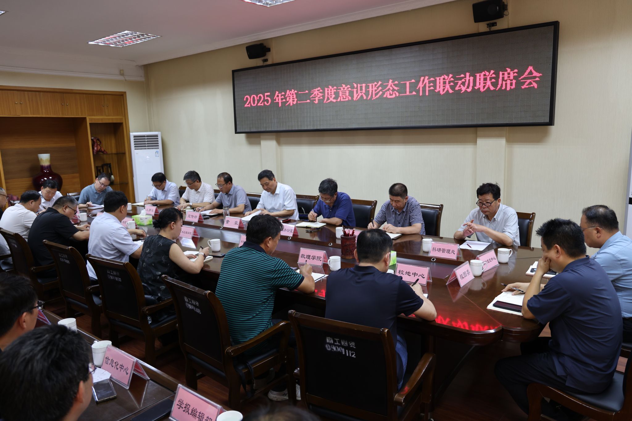 本网讯(记者/王小婉)7月2日上午,校党委副书记、工会主席董豪主持召开2025年第二季度意识形态工作联动联席会议,会商研判部署学校意识形态工作。各直属党组织书记、学校意识形态工作领导小组成员单位主要负责同志参加。