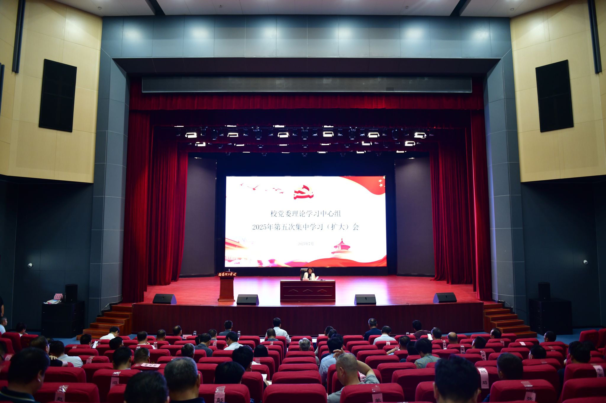 本网讯(记者/陈飞)7月17日,校党委理论学习中心组举行2025年第五次集中学习(扩大)会,校长郝好山,党委副书记、工会主席董豪,纪委书记、监察专员于继武,副校长蔡广宇、高芳放、黄金书,全体校领导及中层干部参加学习,校党委副书记张爱红主持会议并讲话。