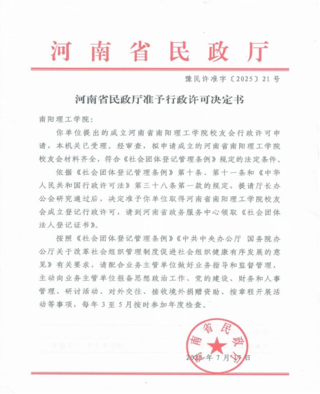 本网讯(特约记者/王金)7月29日,我校领取河南省民政厅下发的河南省安博官方网页版校友会成立行政许可决定书及社会团体法人登记证书,标志着我校校友会正式获得上级批准。校友会的正式获批既是全校师生与历届校友的共同心愿,也是学校校友工作发展的重要里程碑。