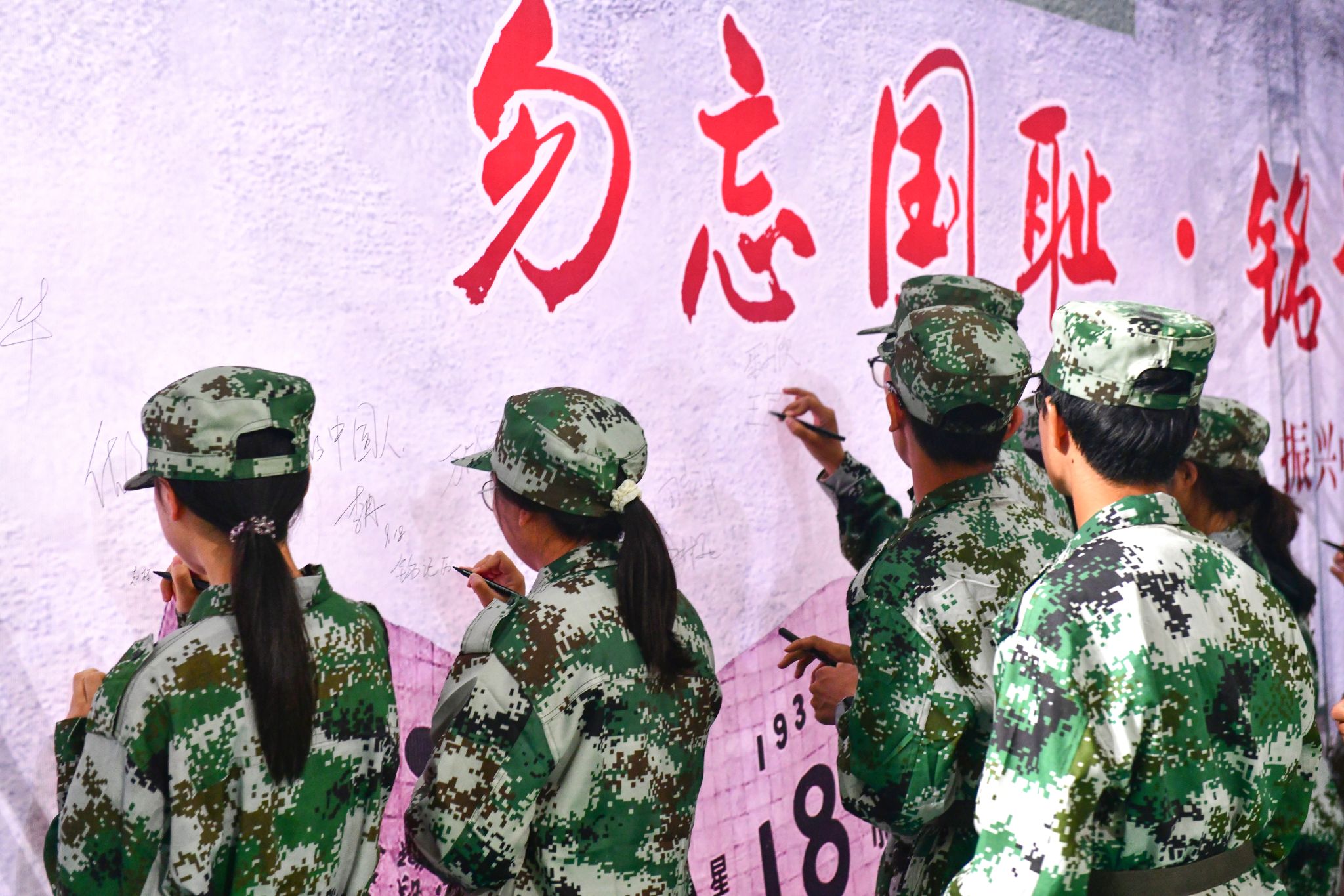 董豪致辞,他说“历史是最好的教科书”,他激励师生勿忘国耻、勇担时代使命,为民族复兴贡献青春力量。董豪对青年学生提出三点希望:一要铭记历史筑牢爱国根基,二要砥砺奋进勇担时代使命,三要实干争先书写青春华章,他勉励师生将爱国情融入学习生活,成长为堪当大任的时代新人。致辞结束后,董豪带领师生在“九一八”事变94周年纪念展板上签名,以笔墨寄初心,传递铭记历史、珍视和平的坚定信念。