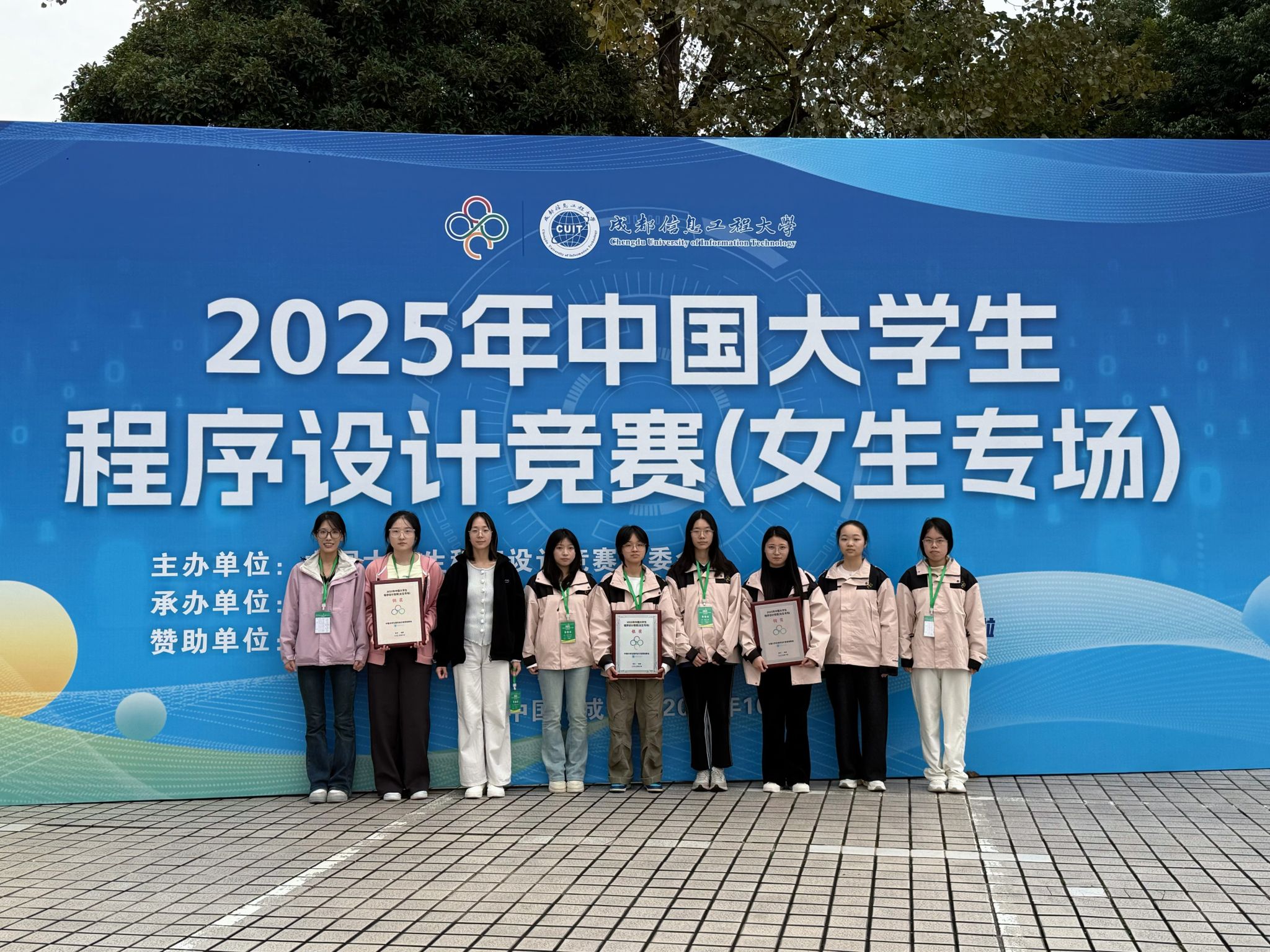 本网讯(特约记者/陈可)10月25日至26日,中国大学生程序设计竞赛女生专场比赛在成都信息工程大学举行,我校学子陈泺冰、夏圣燕、张瑞婷组成的代表队突破重重阻力,最终以解答6题的优异战绩勇夺一枚银牌。另外,由吴佳轩、史嘉琳、赵静冉和胡婉婷、袁锦、徐涵钰组成的两支代表队分别夺得两枚铜牌,三支参赛队伍全部获奖。