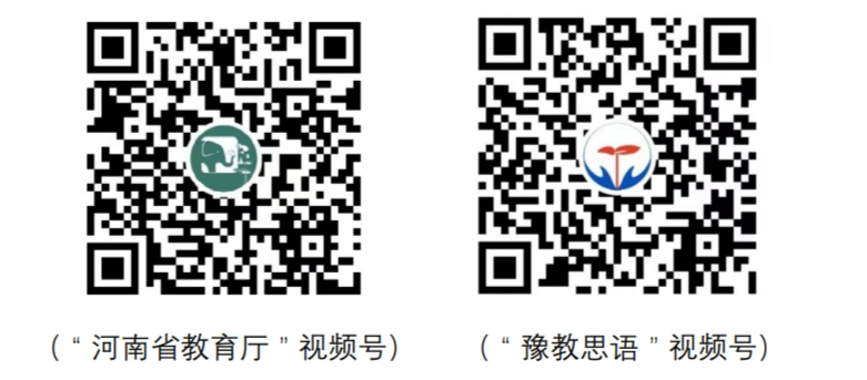 收看渠道:扫码关注“河南省教育厅”视频号或“豫教思语”视频号,点击屏幕上“预约”待直播开始即可观看。