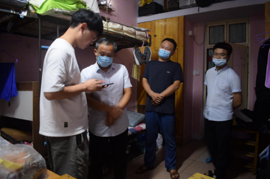 8月29日晚21时,党委书记赵东江、副书记冯博和辅导员深入第一批返校学生宿舍,为返校学生送去关怀和温暖。在宿舍内,赵东江与同学们沟通交流,对学生们在疫情期间坚持学习、努力实践表示赞赏。同时,叮嘱同学们不要因疫情防控形势向好而放松警惕,要及时反馈生活、学习中所遇到的困难,实现返校同学的生活舒心、学习安心,家人放心。(审核/刘庚)