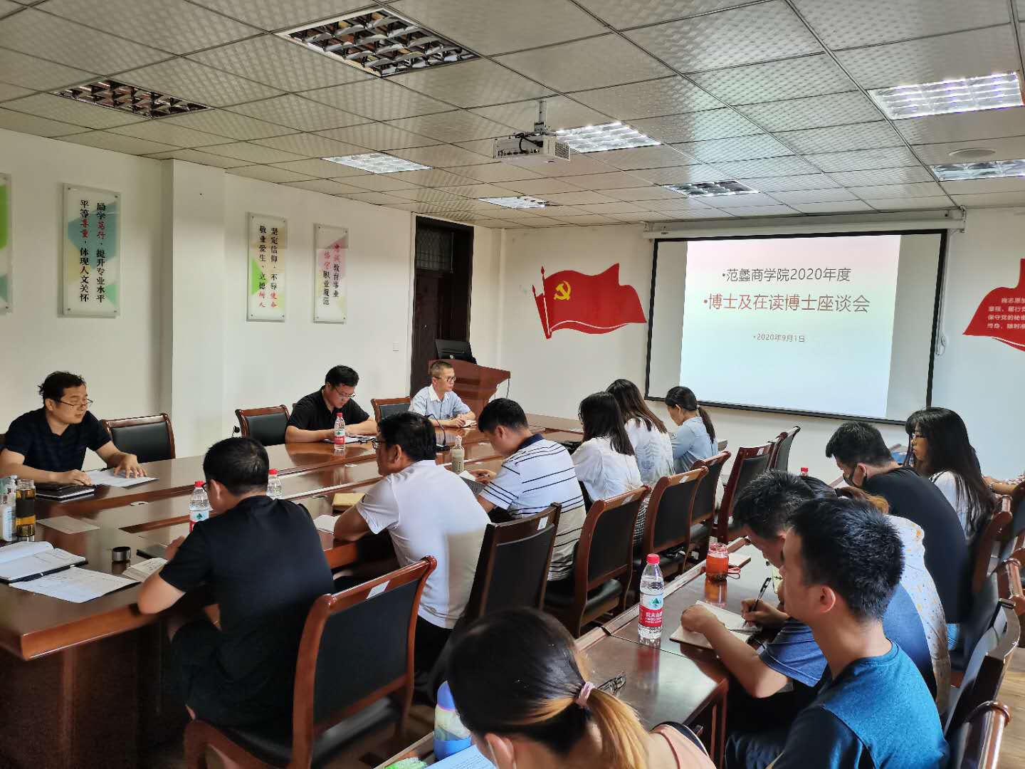 本网讯(特约记者/李浩)9月1日下午范蠡商学院召开2020年度博士教师座谈会,范蠡商学院院长吴战勇、副院长郭永奇、吕晓军、党政军和博士教师参加会议,会议由吕晓军主持。