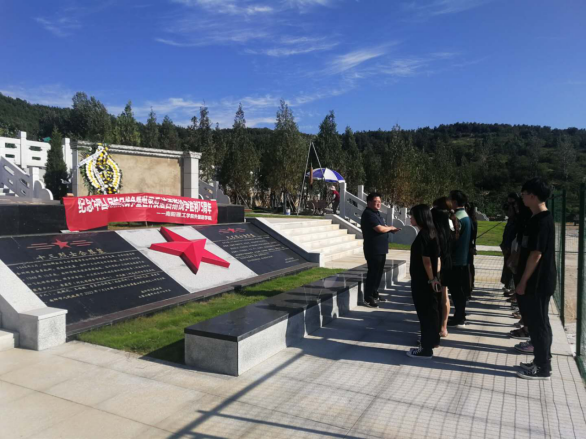 站在烈士合葬墓前,师生共唱《中华人民共和国国歌》,为民族独立、人民解放事业英勇献身的烈士默哀三分钟并敬献花篮。