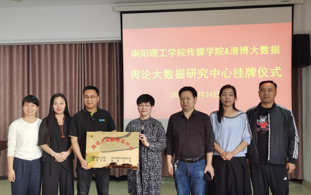 本网讯(特约记者/岳小玲 ) 9月24日,传媒学院、清博大舆论大数据研究中心揭牌仪式在学院会议室举行,北京清博大数据科技有限公司华北区总经理王奎,河南地区商务专员张娅楠,校地合作处副处长杨怀坦和传媒学院院长李存参加揭牌仪式。