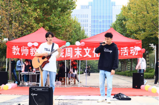 本网讯(特约记者/何雷雨)10月11日,为迎接新生到来,教师教育学院在齐贤广场举办“周末文化广场”活动,数百名学生到场观看演出。