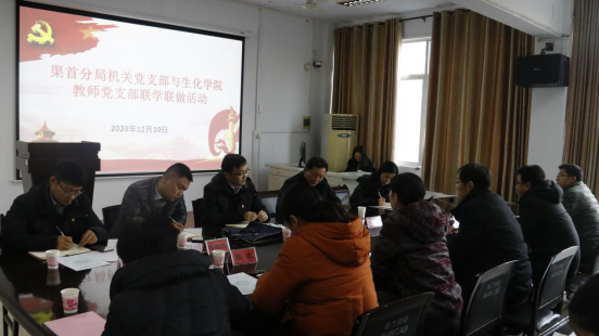 本网讯(特约记者/张梦 学生通讯员/孙唯玉)12月10日,渠首分局机关党支部与生物与化学工程学院教师党支部在会议室以“学习远景目标,共建美丽中国”为主题开展联学联做活动。