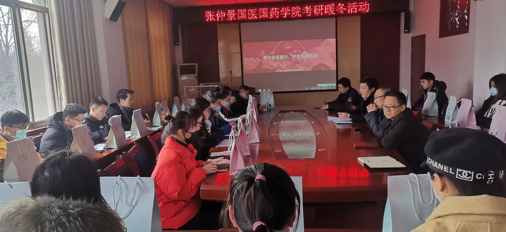 本网讯(特约记者/刘征)临近考研,为缓解考研学子的压力,鼓励考研学子奋力前行。12月22日,张仲景国医国药学院在会议室举办“愿你披星戴月,终能凯旋而归”考研暖冬活动。院长卞华、党委书记段焰、相关负责同志和考研学子代表参加活动。