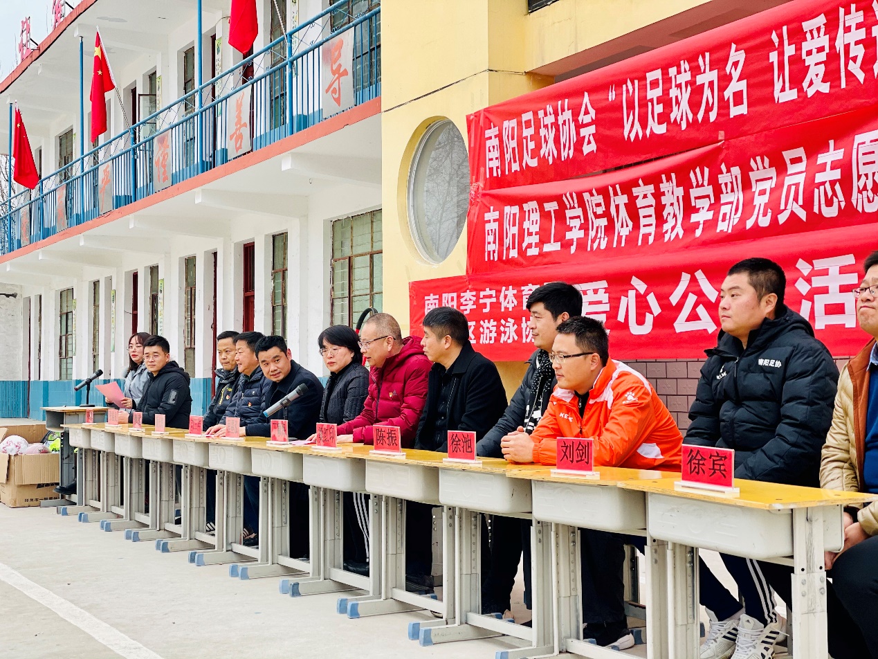 本网讯(特约记者/徐驰)12月25日下午,体育教学部党员志愿服务队和南阳市足球协会、河南世达体育产业有限公司、李宁体育园一行来到宛城区黄台岗镇中心小学开展献爱心公益志愿活动。黄台岗镇副书记、镇长称曌泓,副书记刘三洋,南阳市政协委员、河南世达体育产业有限公司董事长梁红印、体育教学部党总支书记丁颖海、副主任顾长海等参加活动。