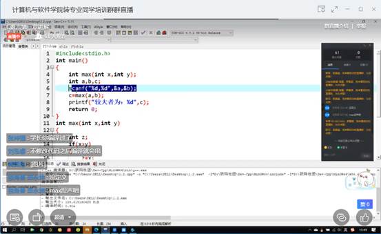 本网讯(特约记者/陈可)1月13日,计算机与软件学院为转专业学生开展为期4周的线上C语言培训,以补齐他们的专业短板,为下学期学习打下基础。