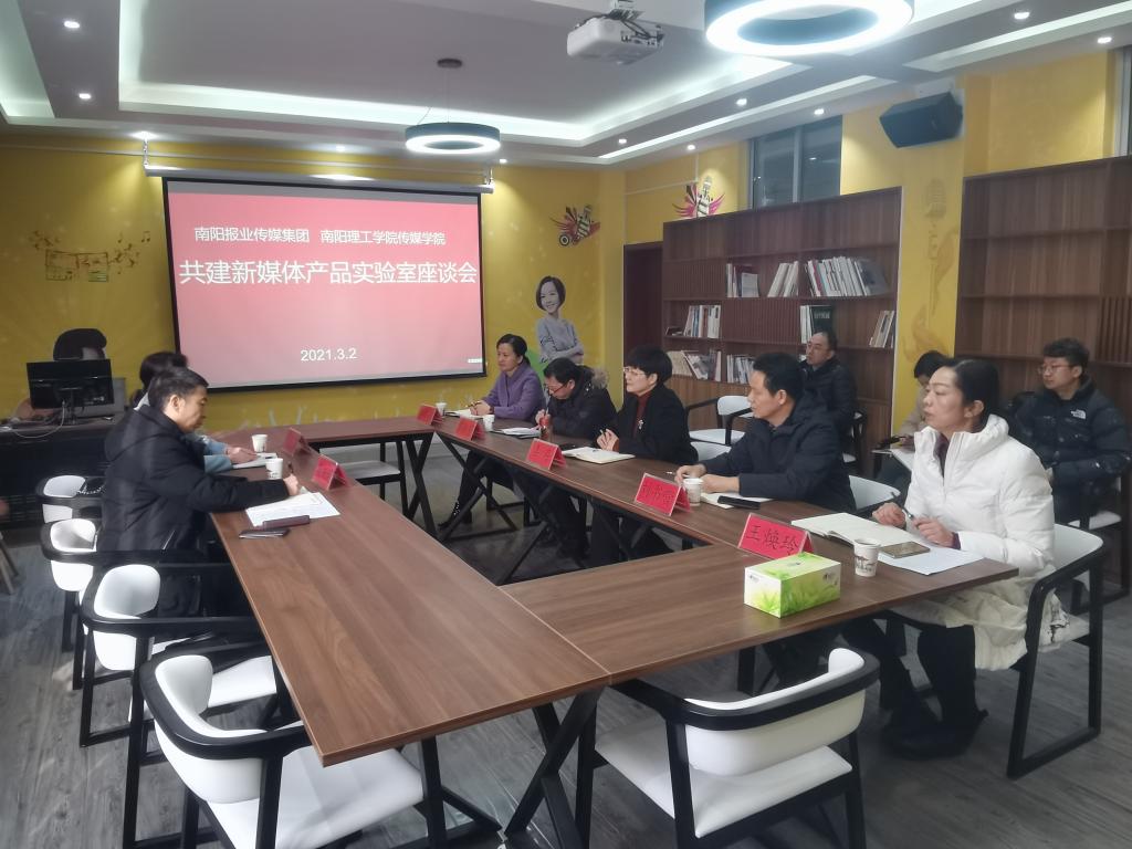 本网讯(特约记者/张允)3月2日上午,南阳报业传媒集团与传媒学院合作共建新媒体产品实验室座谈会在学院举行。南阳报业传媒集团编委冯兴阁、政务新媒台台长王笑荷,学院领导李存、刘书营和部分专业负责人参加座谈会。
