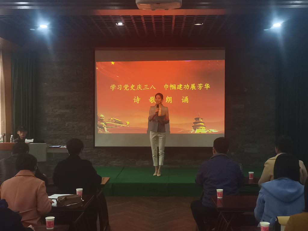 本网讯(特约记者/李志光)3月9日,传媒学院举行了“学习党史庆三八,巾帼建功展芳华”诗歌朗诵比赛。传媒学院院长李存、党委书记刘书营等领导及学院教师、留学生参加本次活动。