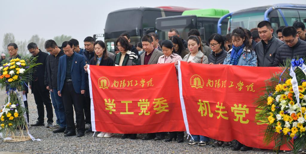 本网讯(学生记者/李彤彤)青山隐隐埋忠骨,白河滚滚慰英魂。4月1日上午,我校机关党委、学工党委和教辅后勤党委党员代表赴南阳市革命烈士纪念馆开展“缅怀先烈,文明祭扫”主题活动,沉痛悼念为新中国建立,为南阳解放而英勇牺牲的革命先烈。