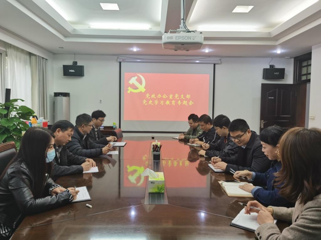 会议指出,今年是中国共产党成立100周年,党中央在全党开展党史学习教育,正当其时,意义重大。党政办公室党支部要深入学习贯彻习近平总书记在党史学习教育动员大会上的重要讲话精神,贯彻落实中央和省委、市委有关工作要求,紧密结合自身工作内容,从自身做起,学好党史教科书、修好党史必修课、用好党史营养剂,从党史中汲取经验智慧和前进力量,做到学党史、悟思想、办实事、开新局,努力为学校各项事业全面提升作出新的贡献,以优异成绩庆祝建党100周年。