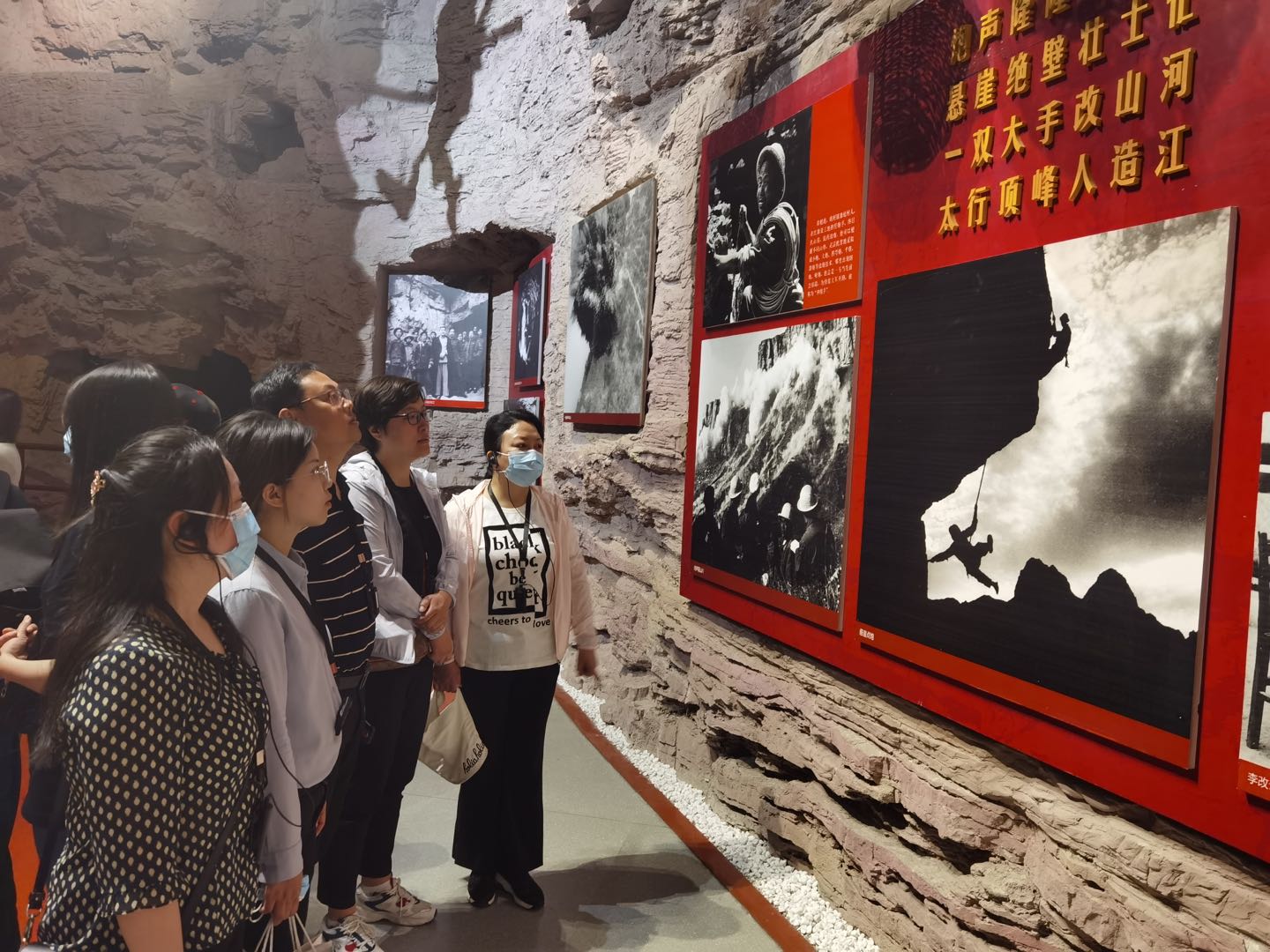 全体党员在红旗渠纪念馆中通过图片文字、历史实物、雕塑、视频等资料,了解林县人民在物资短缺、技术设备落后的艰苦条件下,克服重重困难修建红旗渠的历史壮举;在参观分水闸、青年洞等红旗渠建设中的著名地段时,实地感受红旗渠修筑的恶劣自然条件和林县人民自力更生、艰苦奋斗、团结协作、无私奉献的红旗渠精神。