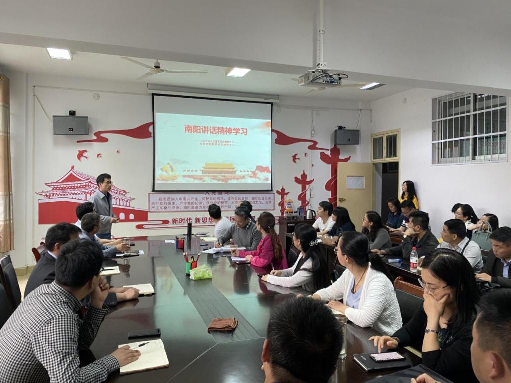 本网讯(特约记者/张露学生记者/汪晓欣)5月24日下午,信息工程学院召开会议传达学习习近平总书记在南阳考察调研时的重要讲话精神,学院领导班子成员、全体教师参加会议。