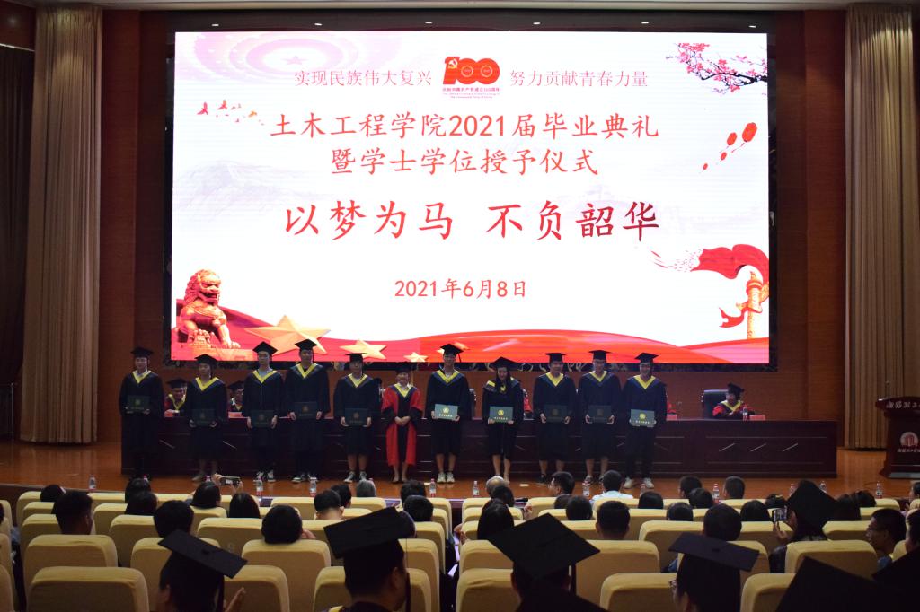本网讯(特约记者/任寰 张子正 学生记者/于婉婷)6月8号,土木工程学院举办2021届毕业典礼暨学士学位授予仪式。学院领导班子以及全体教师和毕业生参加典礼。