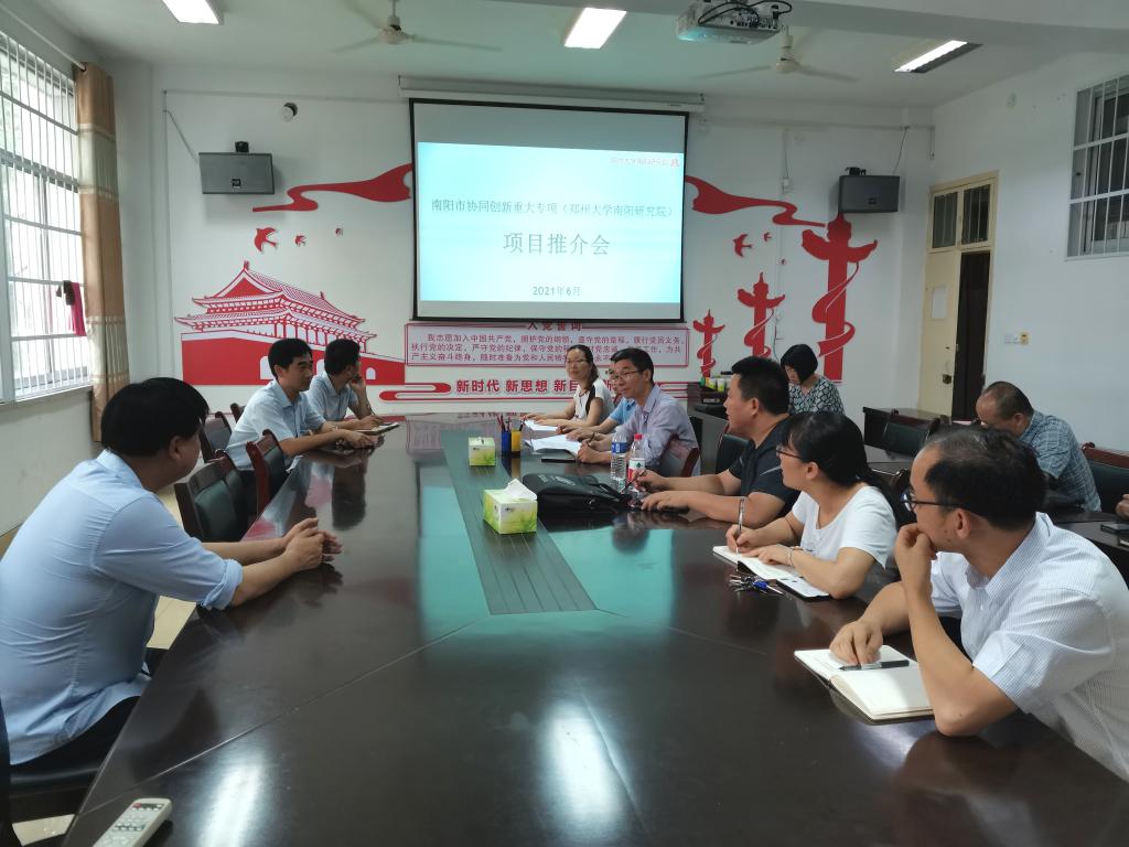 会上,郑州大学南阳研究院相关人员就南阳市协同创新重大专项(郑州大学南阳研究院)项目设置、申报条件、申报流程和项目优势等进行详细介绍。结合第一批项目申报情况,就如何寻找和说服企业参与项目申报、如何在项目建设过程中解决企业实际技术难题以及项目申报过程中出现的常见问题进行详细说明。