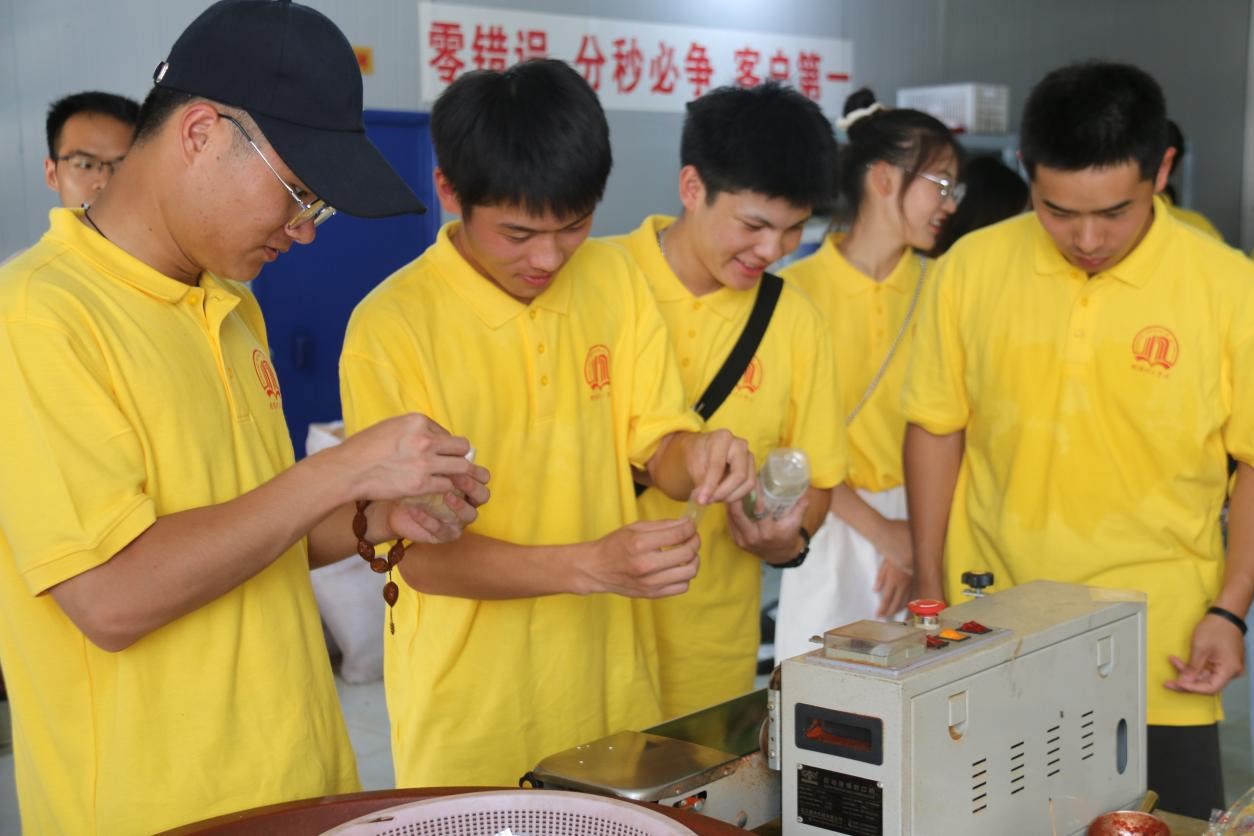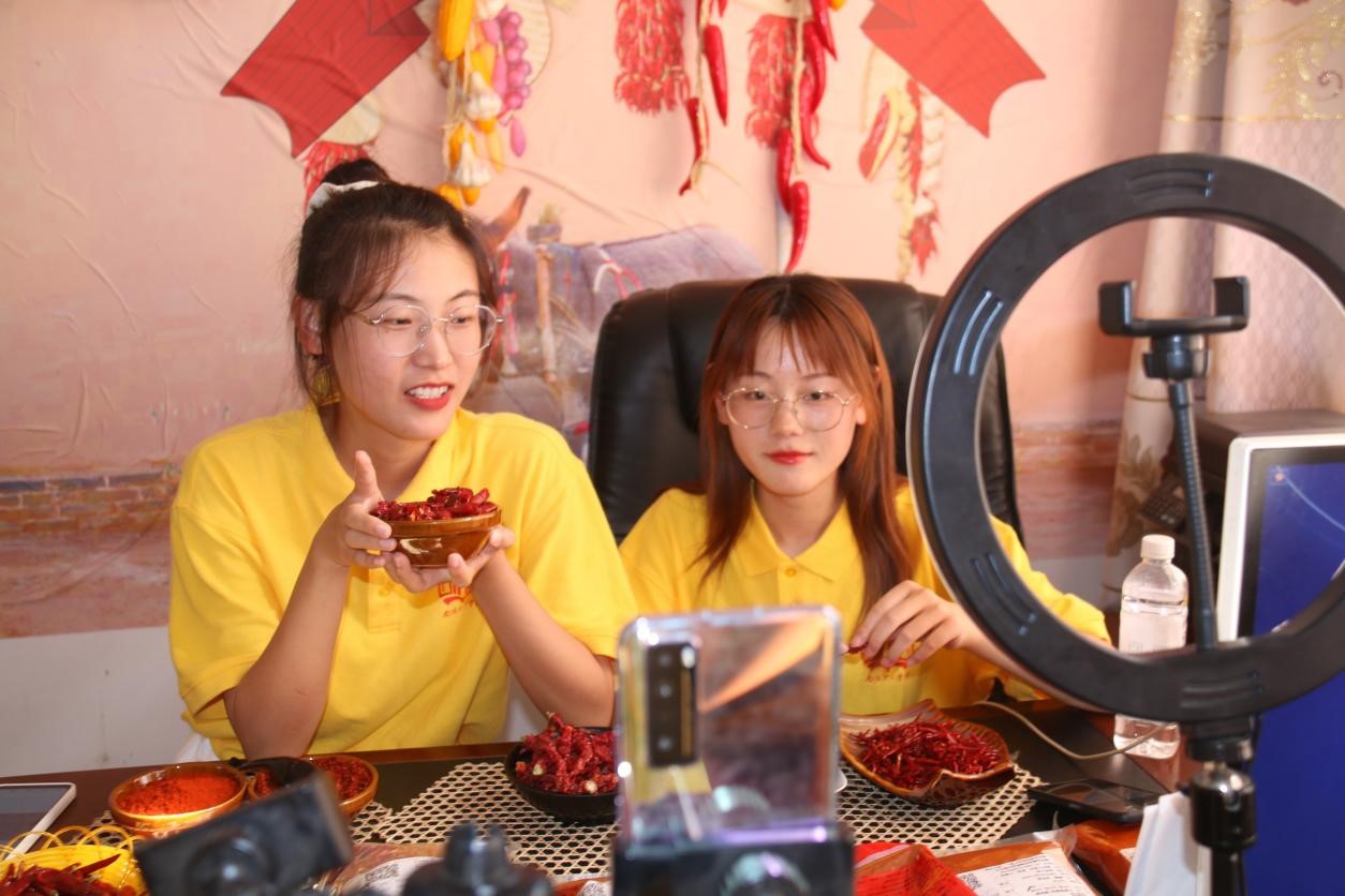团队成员先后参观香花镇辣椒城、辣椒种植基地、仓库和生产车间,基地负责人向同学们介绍香花镇辣椒的种植历史、品质特点和电商售货的相关情况。同学们亲身体验采摘辣椒、成品包装,绘制辣椒手稿,制作宣传海报,并通过电商平台为辣椒制品直播带货。