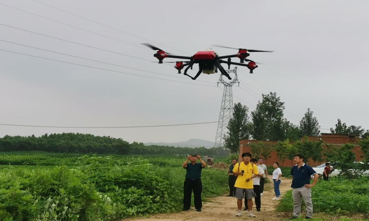 7月10日,志愿服务队分两队前往泓森植物园与九重镇农地开展实地调研。队员们在泓森植物园利用无人机航拍,对植物园的植被、树木分布等进行了解,同时帮助工人喷洒农药,了解其工作情况,介绍科普无人机工作效果。前往淅川县九重镇农地的队伍,根据当地作物生长需要开展具体调研,实施无人植保机农药喷洒工作,其效果得到当地村民充分肯定。