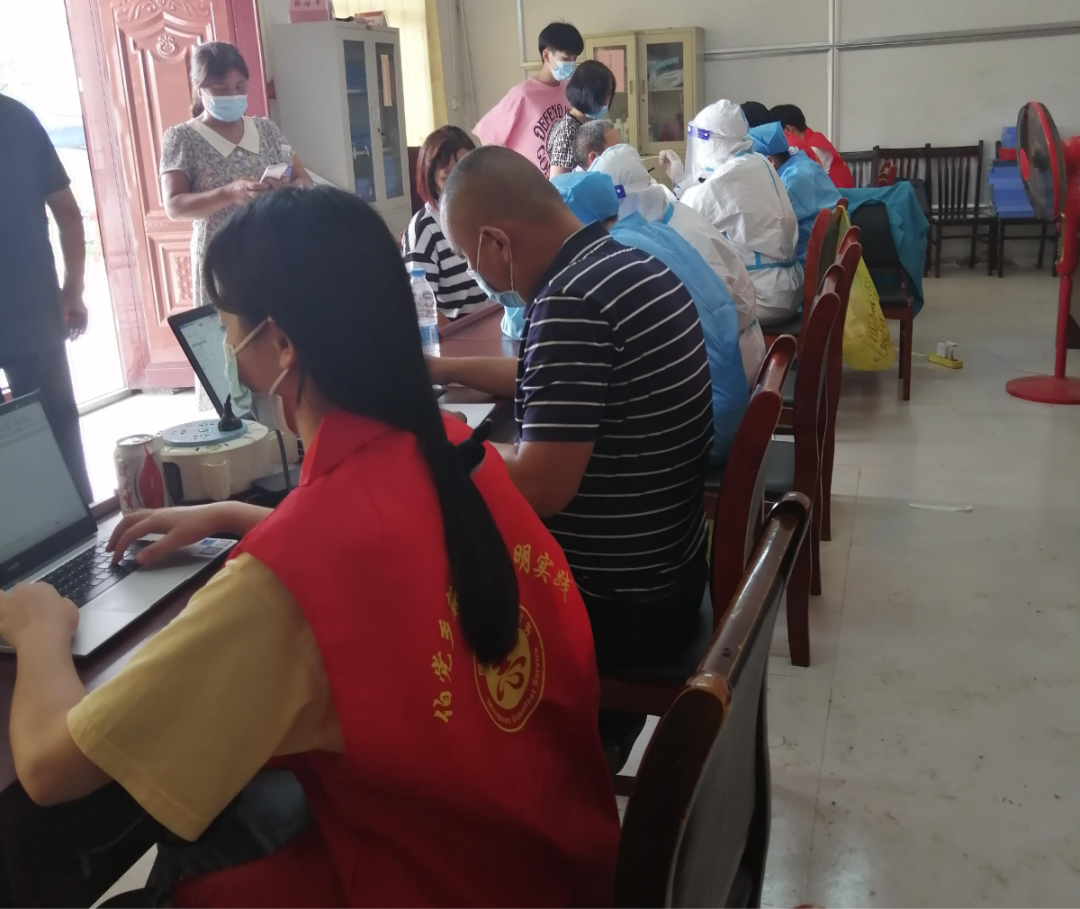 在严重的汛情结束后,疫情又再次复发,打乱了大家生活的节奏。我积极地参加了所在社区发起的疫情志愿者活动。我负责在社区测量体温、登记人员信息、统计疫苗接种和做核酸的人数等。