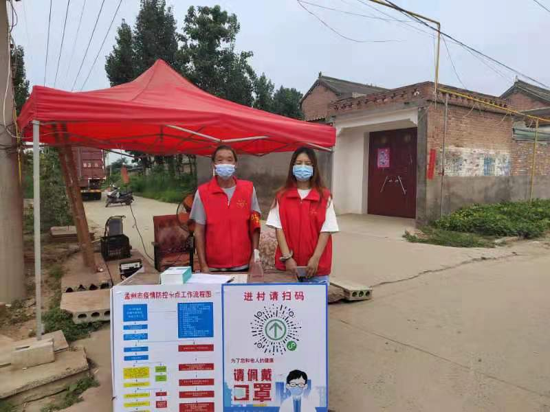 我从8月9日加入我们村防疫志愿者团队,登记外来车辆人员信息、检查健康码、测量体温。