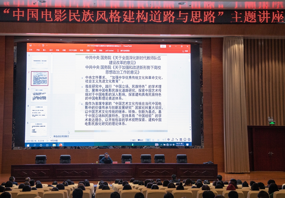王海洲从新时代为什么要建立中国电影风格出发,系统回顾了中国电影再民族化的实践探索和理论探讨。他指出,中国电影民族风格的建构要从价值表达到形式呈现等方面从民族文化特质中探胜求宝,并观照时代性、国际性的要求,从而创作出从内容到形式和谐统一、富有国际视野和时代意义的能够代表当代文化水准的中国电影作品。讲座结束后,王海洲对现场师生提出的问题进行耐心细致的解答。