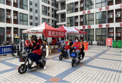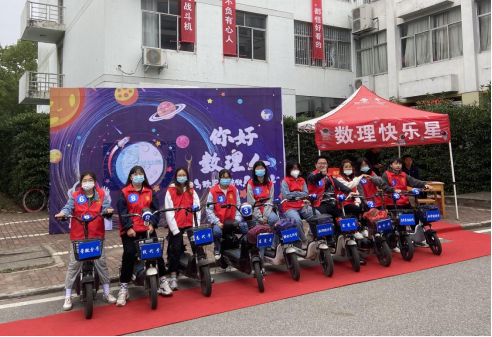数理学院特成立“高代号”“数分号”等以数学与物理元素命名的爱心车队,志愿者骑行做指引、帮助托运行李、搭载新生在宿舍楼与迎新点之间穿梭,为新生介绍校园建筑和风景、学习和生活环境,开启新生在校园的奇妙探索之旅。