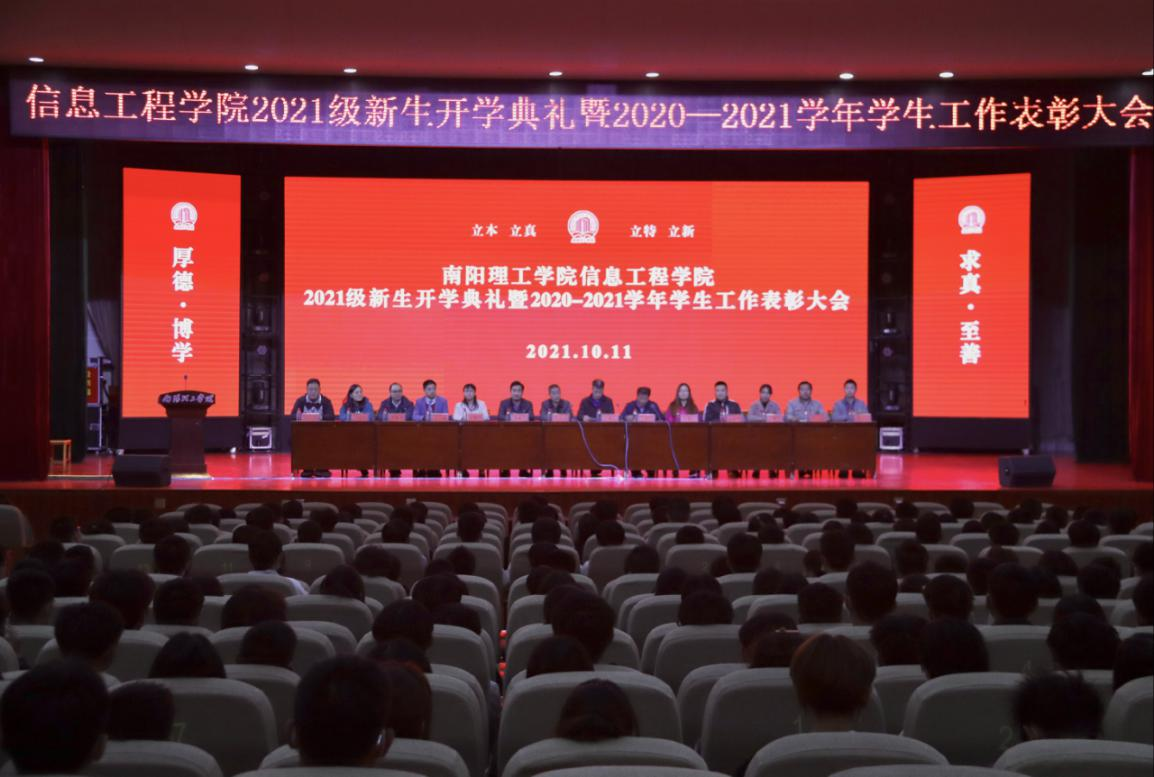 本网讯(特约记者/李志 学生记者/李林溪)10月11日,信息工程学院举办新生开学典礼暨年度学生工作表彰大会,学院领导班子、主要教研室负责人、全体辅导员、2021级新生参加大会。